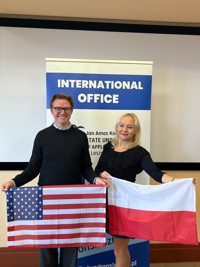 At the beginning of the 2025/2026 academic year, our university welcomed Dylan Mouck, a grantee of the prestigious Fulbright Program, who will serve as an English Teaching Assistant (ETA) at the Jan Amos Komeński State University of Applied Sciences in Leszno throughout the academic year.