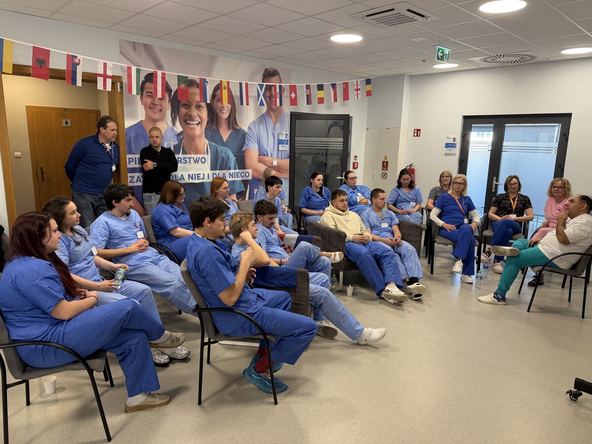Prior to the on-site mobility, online meetings were held as part of the virtual component involving all participants and organisers of the programme. Lectures delivered by Dr Maciej Górecki entitled “Medical Simulation in Practical Student Training” focused on the role of medical simulation in practical student education. The sessions covered, among other topics, types of medical simulation, the four-step method in teaching practical procedures, and selected issues related to first aid.